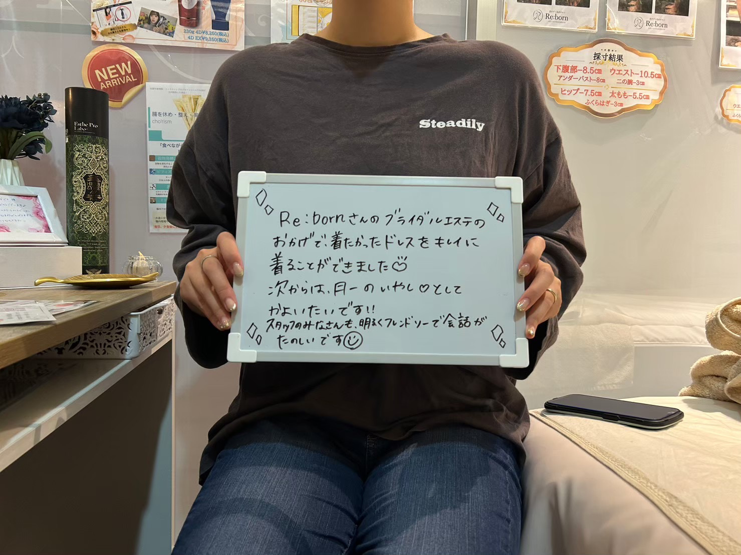 「Re:born(リボーン)」では、痩身の施術から接客まで、お客様の心地よさにこだわったサービスを提供しています。何をしても痩せない方、リバウンドを繰り返している方でも大丈夫。プロの分析とお身体に合ったオーダーメイドコースで目標達成に向けて全力でサポートします。痩せたいだけでなく疲労回復・不調改善・癒しが目的の方にもぴったりのお店です。